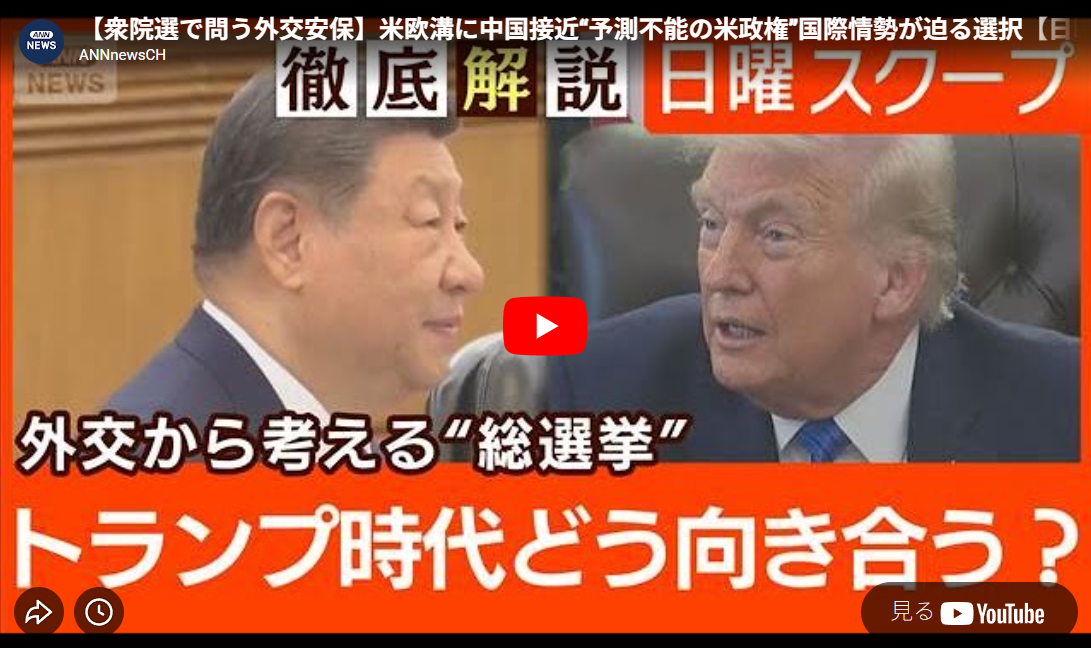 ◆【衆院選で問う外交安保】米欧溝に中国接近“予測不能の米政権”国際情勢が迫る選択【日曜スクープ】(2026年2月1日)