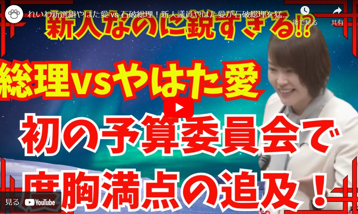 ◆れいわ新選組やはた愛 vs 石破総理!新人議員やはた愛が石破総理を猛追及!国会質問、予算委員会でまさかの展開…