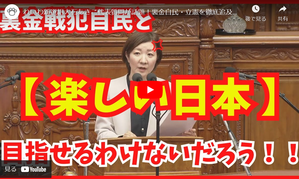 ・れいわ新選組大石あきこ代表質問が話題!裏金自民・立憲を徹底追及!国民のための政治とは?