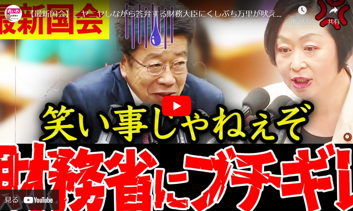 ・【最新国会】ニヤニヤしながら答弁する財務大臣にくしぶち万里が吠えた!国民目線のれいわ新選組が国会で大活躍!【山本太郎 国会 くしぶち万里 】