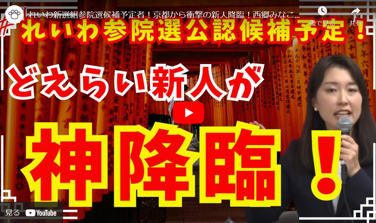 ・れいわ新選組参院選候補者第1号が決定!京都から衝撃の新人降臨!西郷みなこ氏の挑戦と消費税廃止の訴え