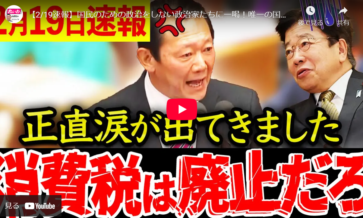 ・【2/19速報】国民のための政治をしない政治家たちに一喝!唯一の国民目線の政党れいわ新選組のさかぐち直人議員の言葉に心が震えました!【山本太郎 国会 】