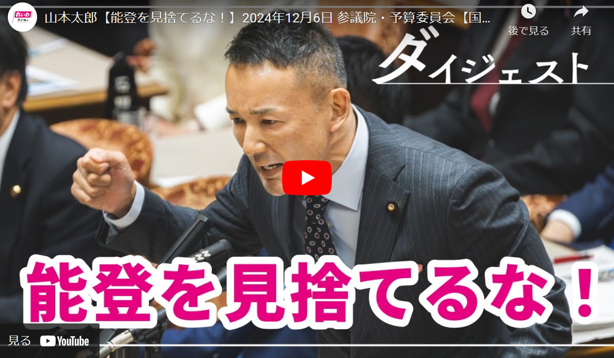 ◆山本太郎【能登を見捨てるな!】2024年12月6日 参議院・予算委員会【国会ダイジェスト】