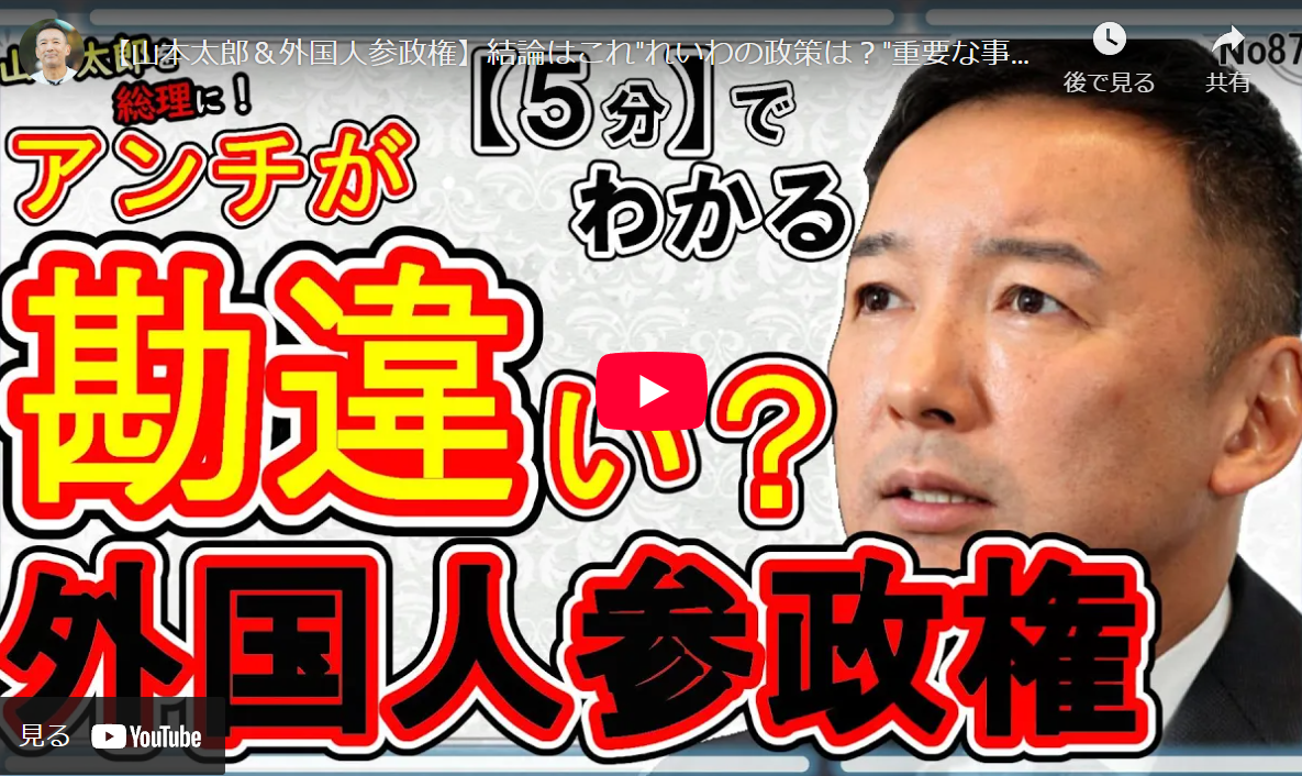 ■山本太郎&外国人参政権!結論はこれ”れいわの政策は?”