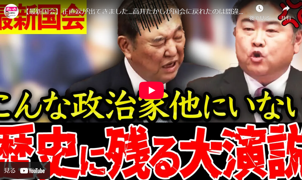 ・【最新国会】正直涙が出てきました…高井たかしが国会に戻れたのは間違いじゃなかった!こんな政治家はれいわを除いて他にいない!【山本太郎 国会 】