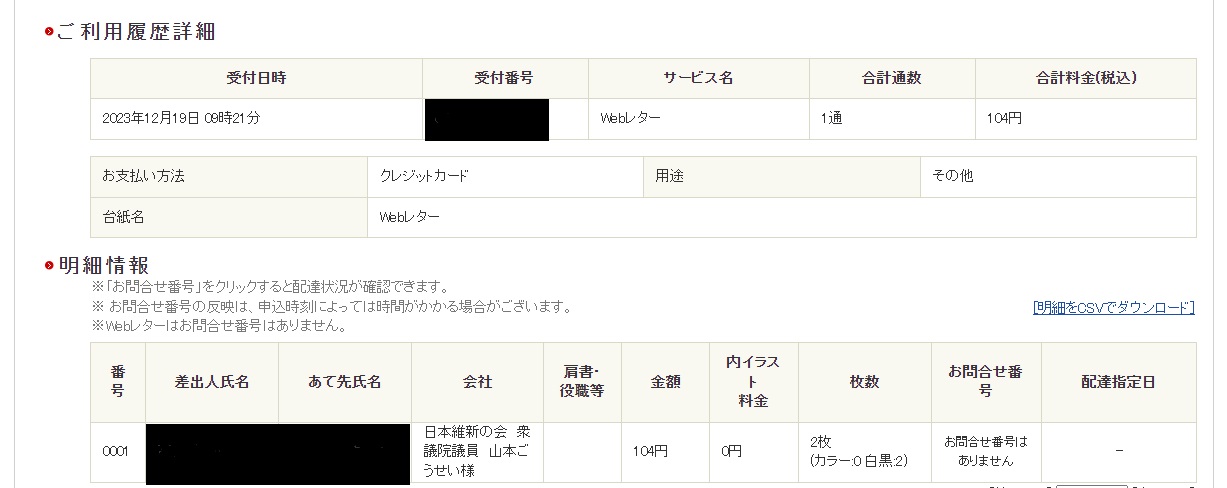 2023年12月19日(火)に、WEBレターで、日本維新の会 衆議院議員 山本ごうせい様に訴えた手紙を送りました。