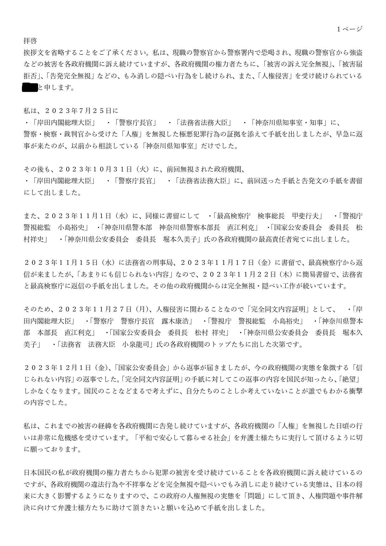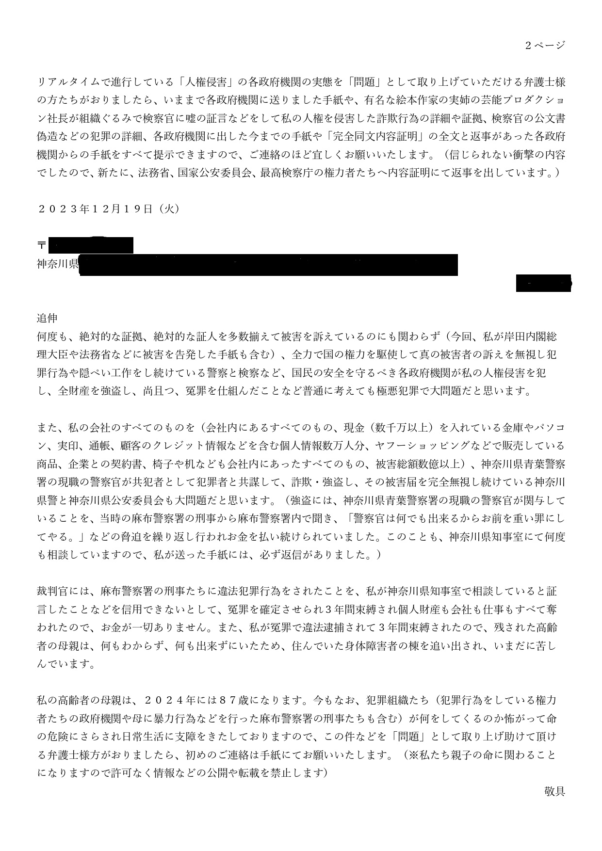 」を、佐藤みのり法律事務所様へ訴えた手紙を送りました。公開します。
