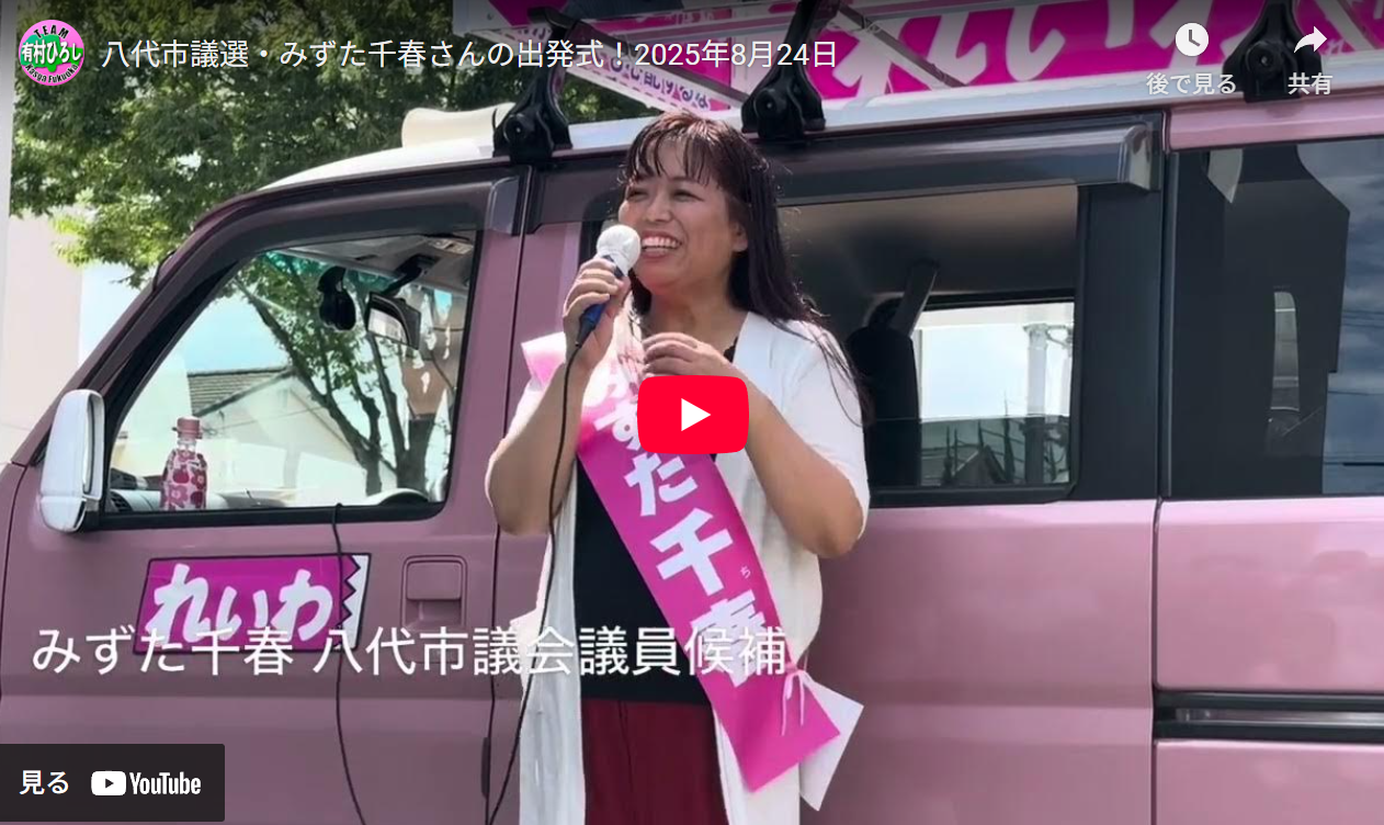 ◆2025年8月31日八代市議会議員 当選。みずた千春市議会議員が誕生しました。