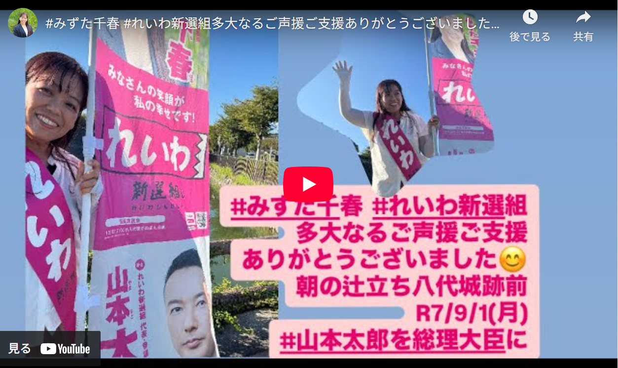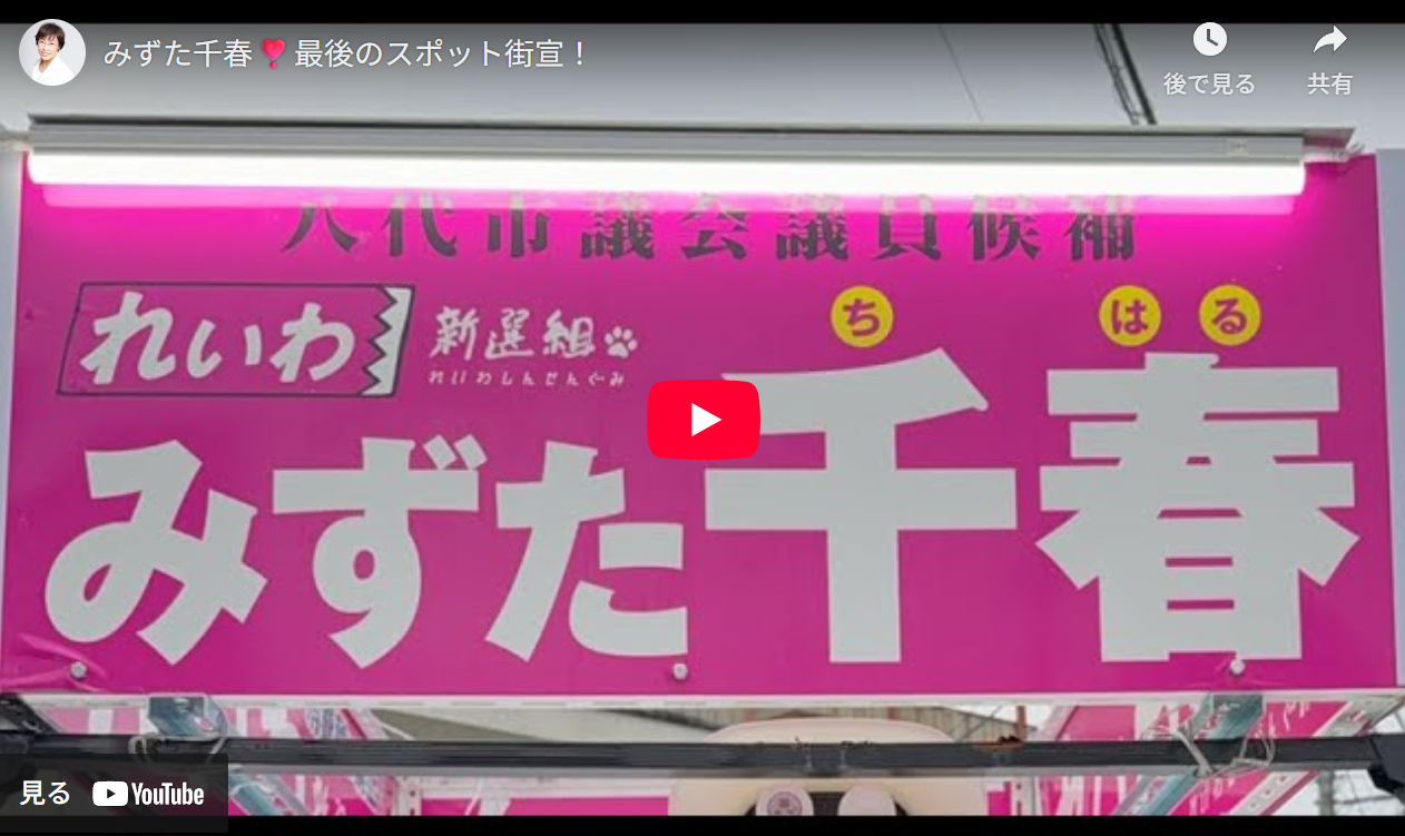 ・千春の楽しい動画集 ・みずた千春チャンネル ・れいわ新選組公式ホームページ
