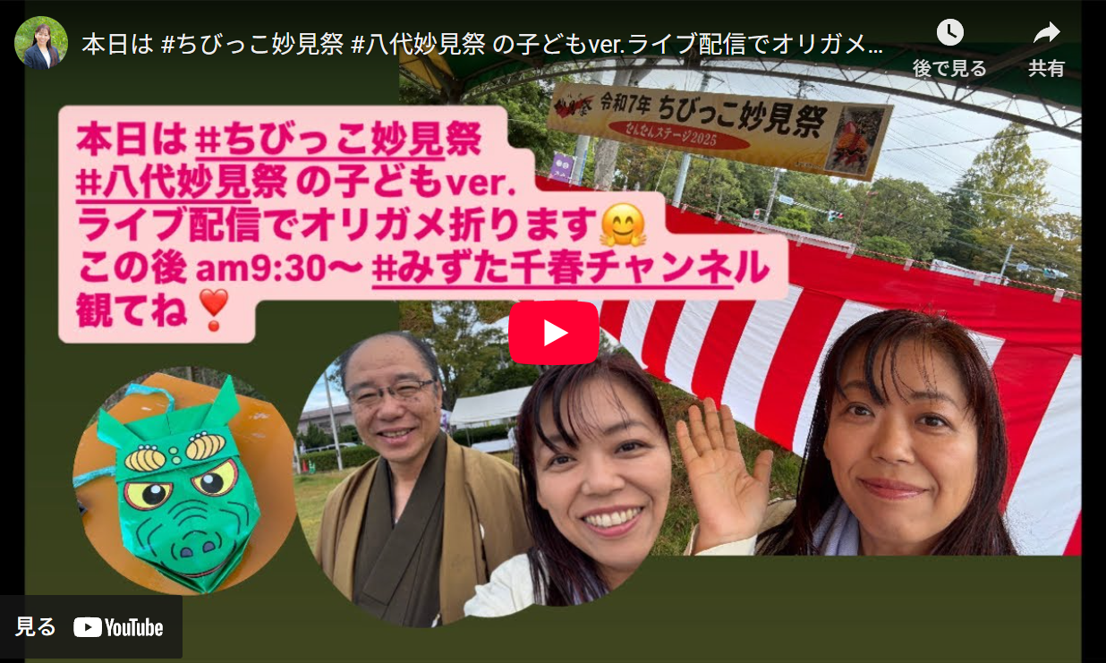 ◆本日はちびっこ妙見祭 八代妙見祭の子どもver.ライブ配信でオリガメ折ります🤗この後 am9:30〜 #みずた千春チャンネル観てね❣️