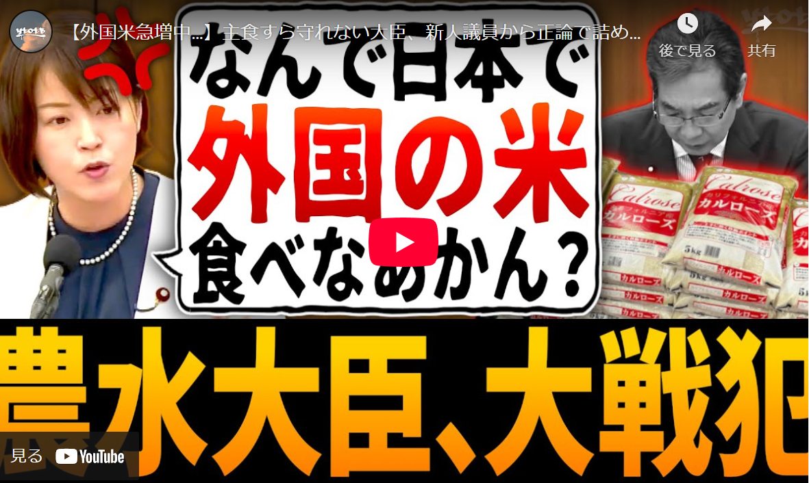 ■【外国米急増中…】主食すら守れない大臣、新人議員から正論で詰められる