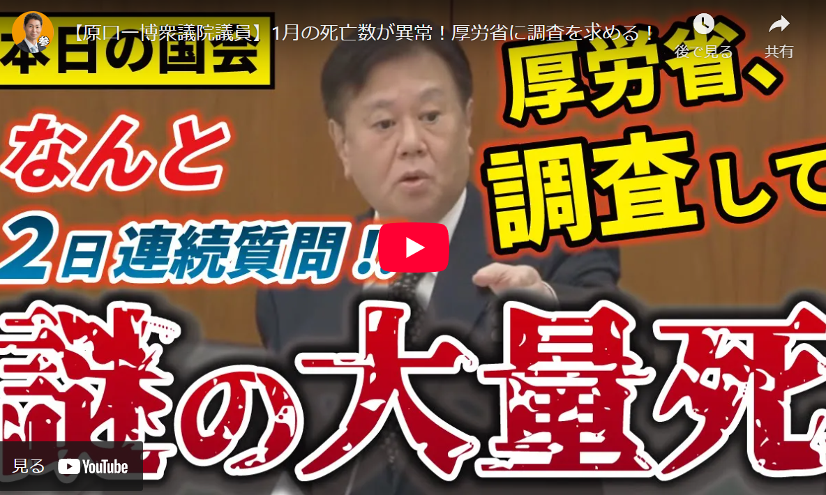 ・【原口一博衆議院議員】1月の死亡数が異常!厚労省に調査を求める!