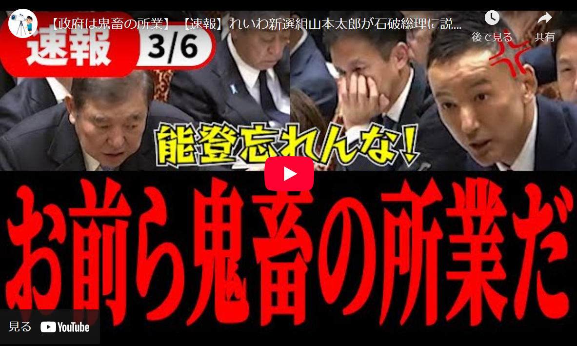 ・【速報】れいわ新選組山本太郎が石破総理に説教!もう能登半島地震を気にしてもいない総理にブチギレ!