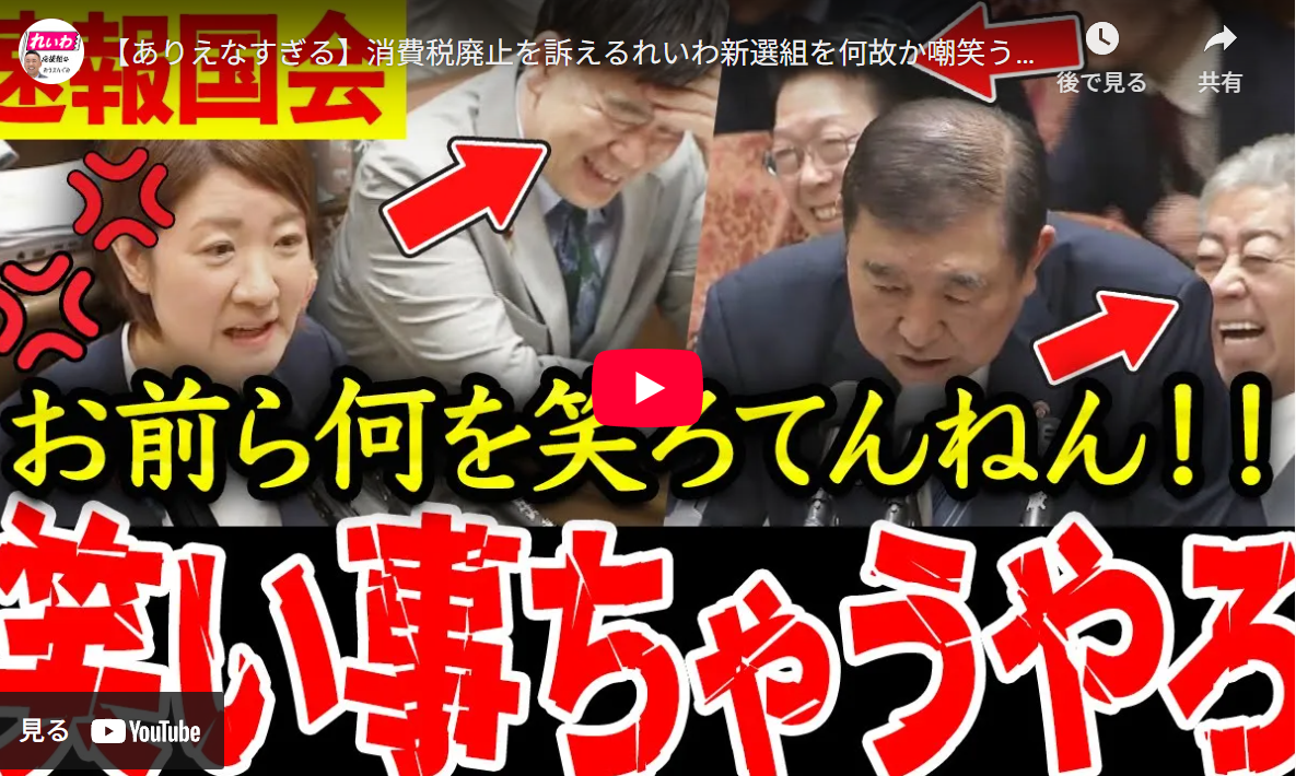 ■消費税廃止を訴えるれいわ新選組を何故か嘲笑う議員たち