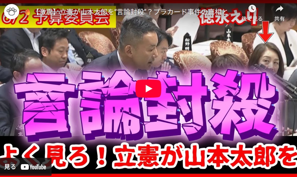 ■🔥【激震】立憲が山本太郎を“言論封殺”?プラカード事件の真相と徳永えり議員の正体!(2025年6月2日)