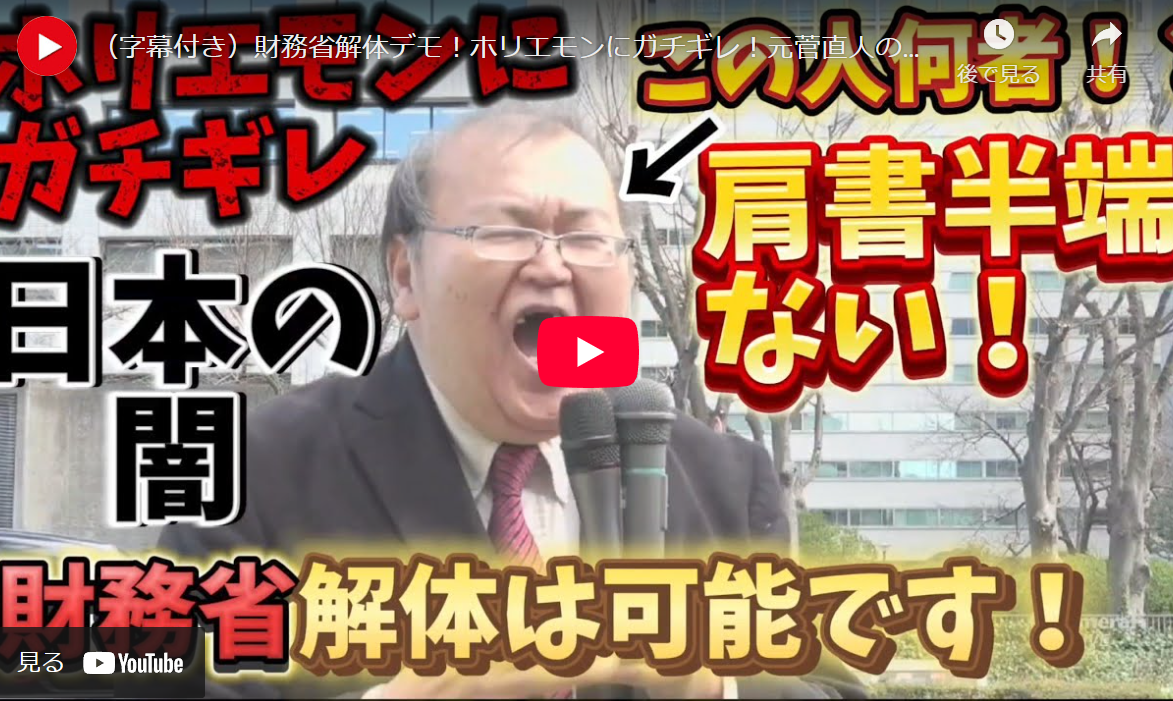 ・(字幕付き)財務省解体デモ!ホリエモンにガチギレ!元菅直人の秘書の演説が半端ない!日本の闇を暴露!