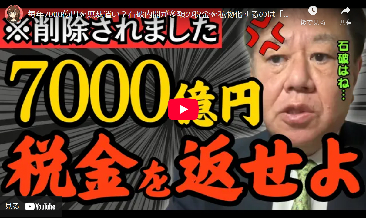 ◆毎年7000億円を無駄遣い?石破内閣が多額の税金を私物化