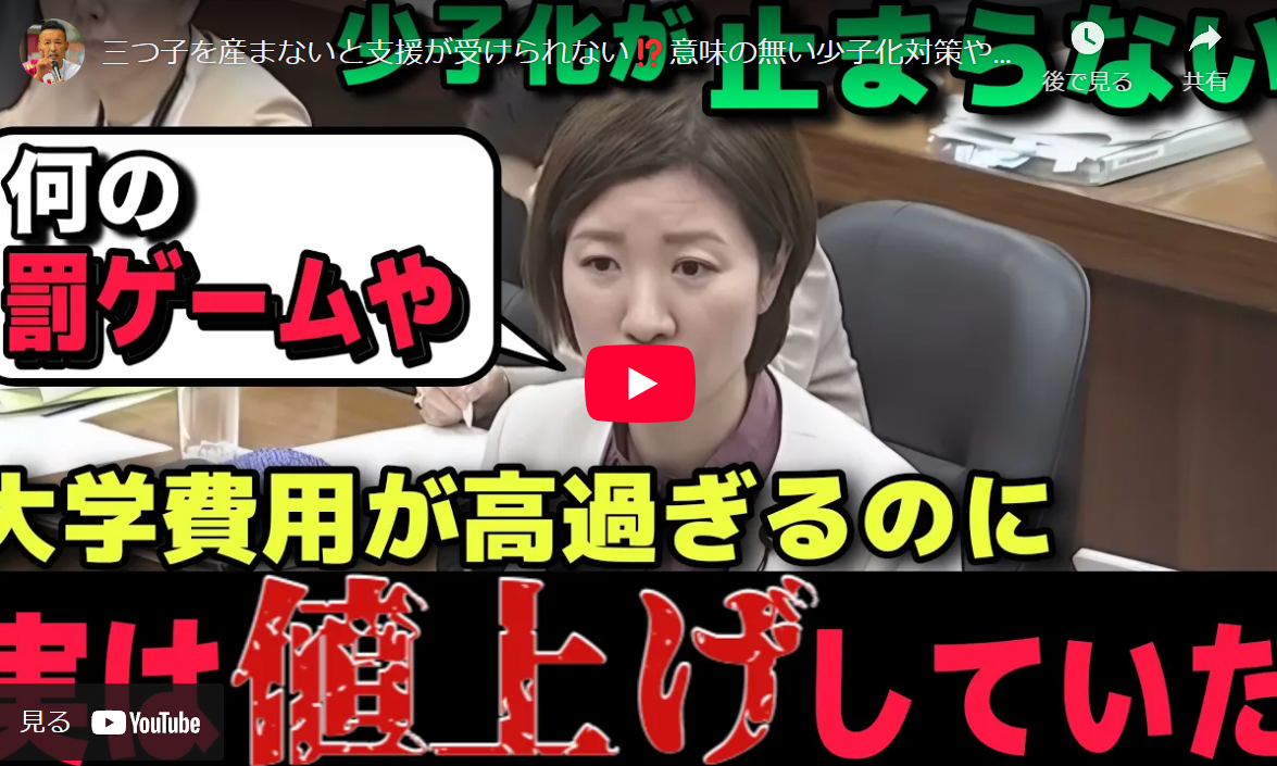 ・意味の無い少子化対策や高過ぎる大学費用を【大石あきこ】がぶった斬る