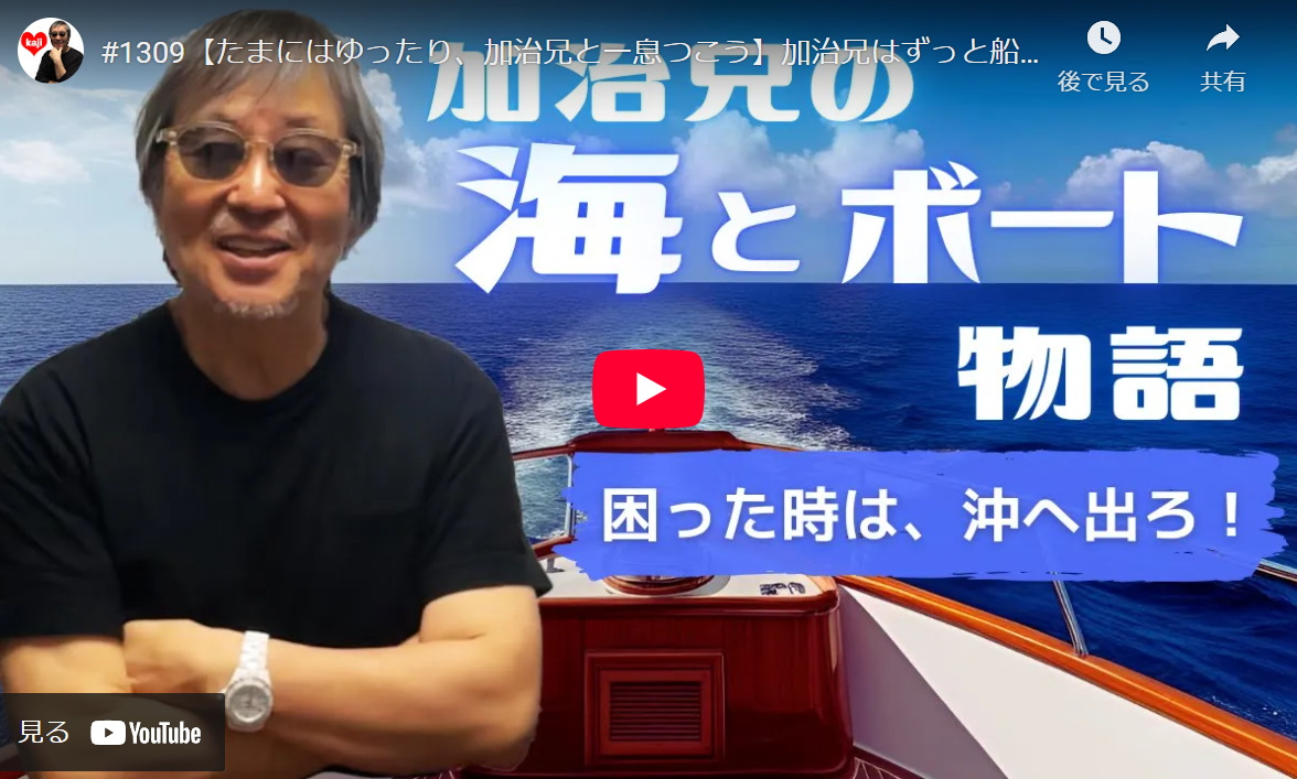 ◆【たまにはゆったり、加治兄と一息つこう】加治兄はずっと船に乗ってきた。なぜ海に憧れ、クルージングがやめられないのか?大自然に抱かれた時、人間に起こるすごい変化!-masakazu kaji-