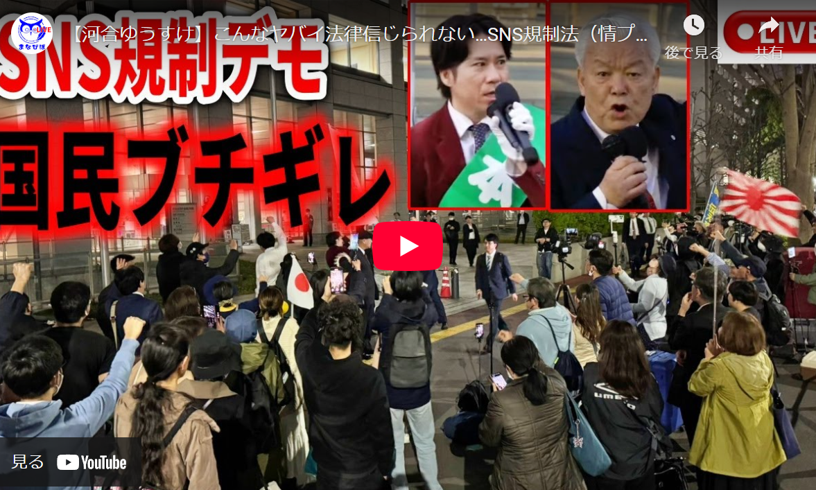◆【河合ゆうすけ】こんなヤバイ法律信じられない…SNS規制法(情プラ法)を絶対許すなデモ 2025/3/25 総務省前