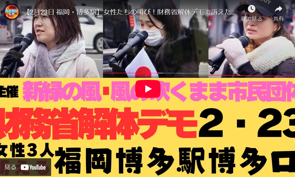 ・【2月23日 福岡・博多駅】女性たちの叫び!財務省解体デモで訴えた切実な現実