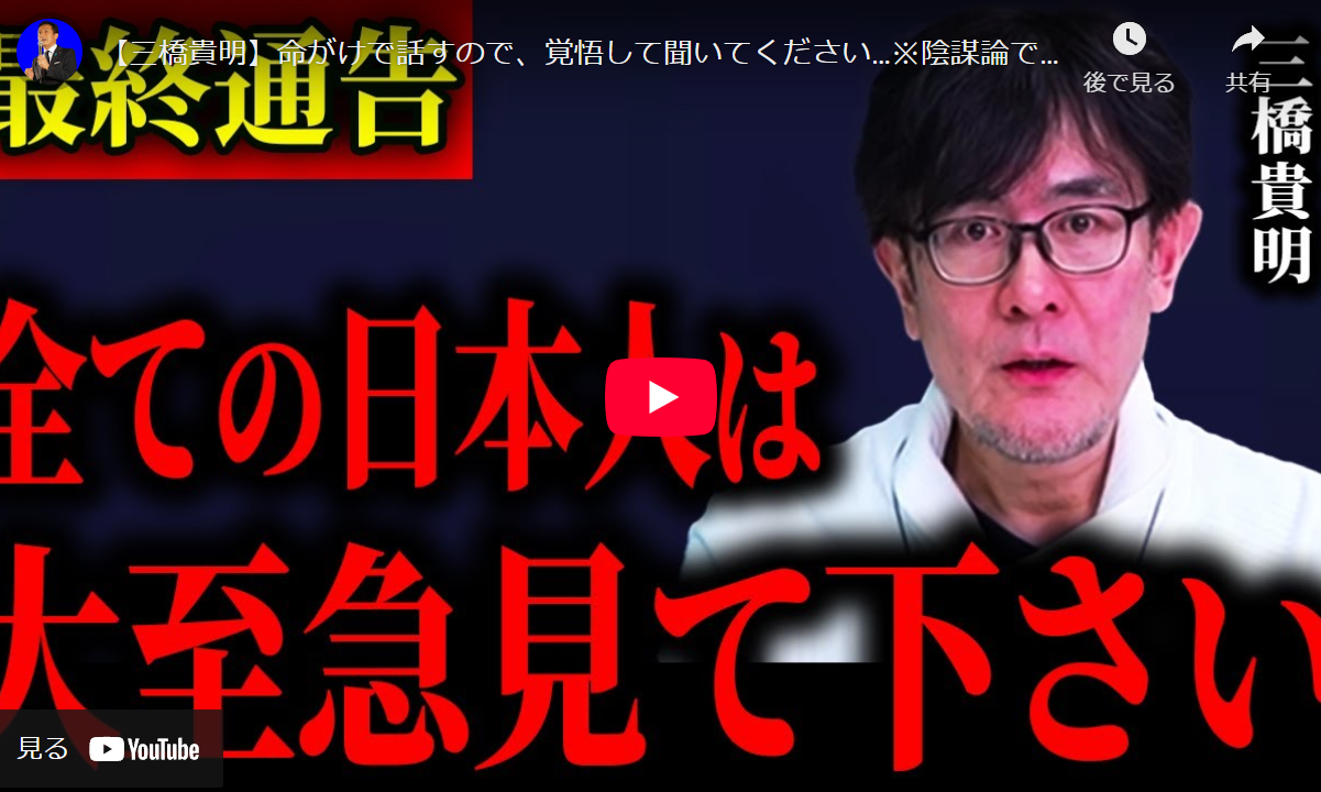 ◆【三橋貴明】命がけで話すので、覚悟して聞いてください…※陰謀論ではなく全て現実です※