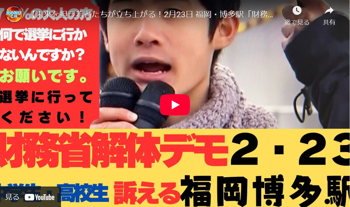 ■未来を担う若者たちが立ち上がる!2月23日 福岡・博多駅「財務省解体デモ」