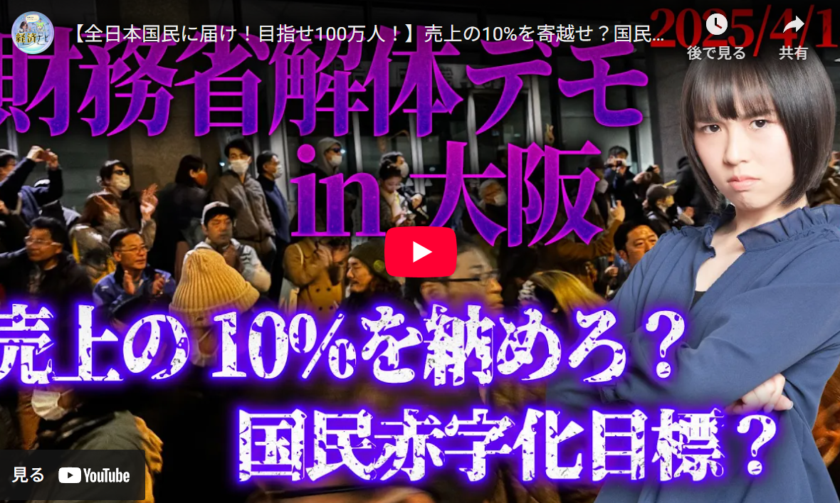 ■【全日本国民に届け!目指せ100万人!】2025年4月13日。財務省解体デモin大阪!