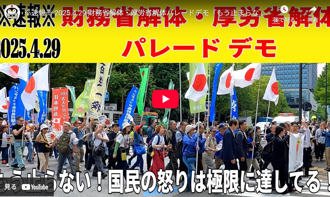 ■2025.4.29 財務省解体・厚労省解体パレードデモ『もう止まらない!国民の怒りは極限に達してる!』