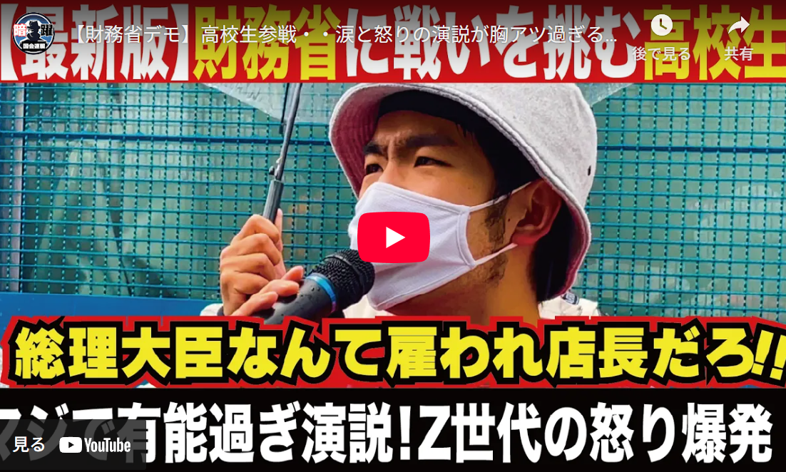 ■【財務省デモ】高校生参戦・・涙と怒りの演説が胸アツ過ぎる!聞け財務省・・