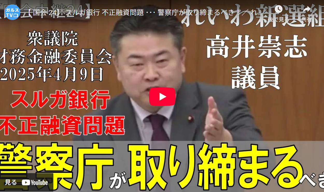 ■【 国会 24】 警察庁が取り締まるべき!/ れいわ新選組 高井崇志 議員 / 財務金融委員会
