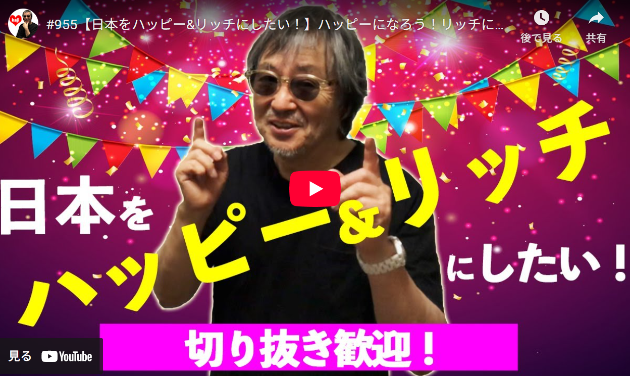 ◆【日本をハッピー&リッチにしたい!】ハッピーになろう!リッチになろう!と言いながら、驚くことにみーんな逆の不幸と貧乏を向いている。鍵は愛情エナジーだ!手伝ってくれ!だから解禁!切り抜き大歓迎!