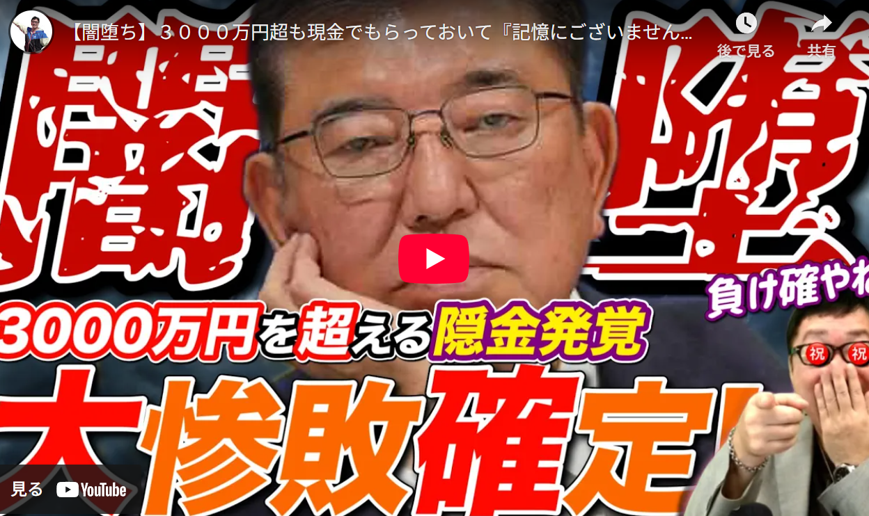・【闇堕ち】3000万円超も現金でもらっておいて『記憶にございません!』は無いだろーーーーー!石破総理【闇献金疑惑】発覚!