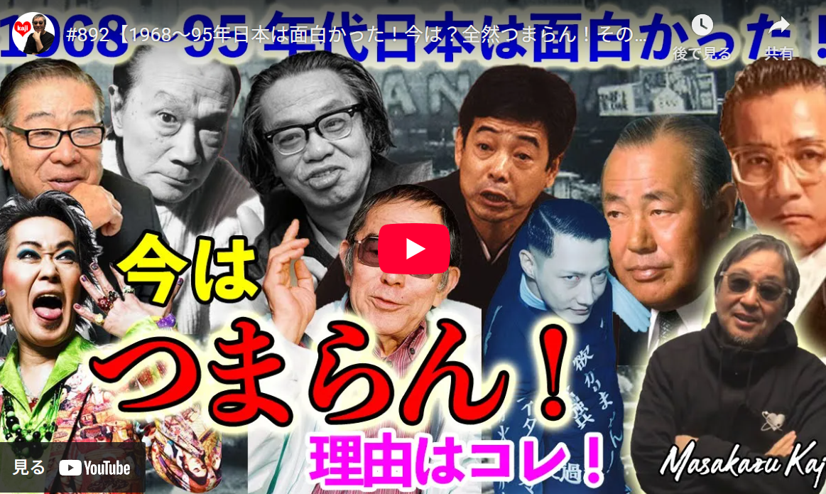 ◆【1968〜95年日本は面白かった!今は?全然つまらん!その理由】面白きこともなき世を面白く!メディア、司法制度の忖度と言葉狩り!で民主主義が崩壊しているからだ。-masakazu kaji-