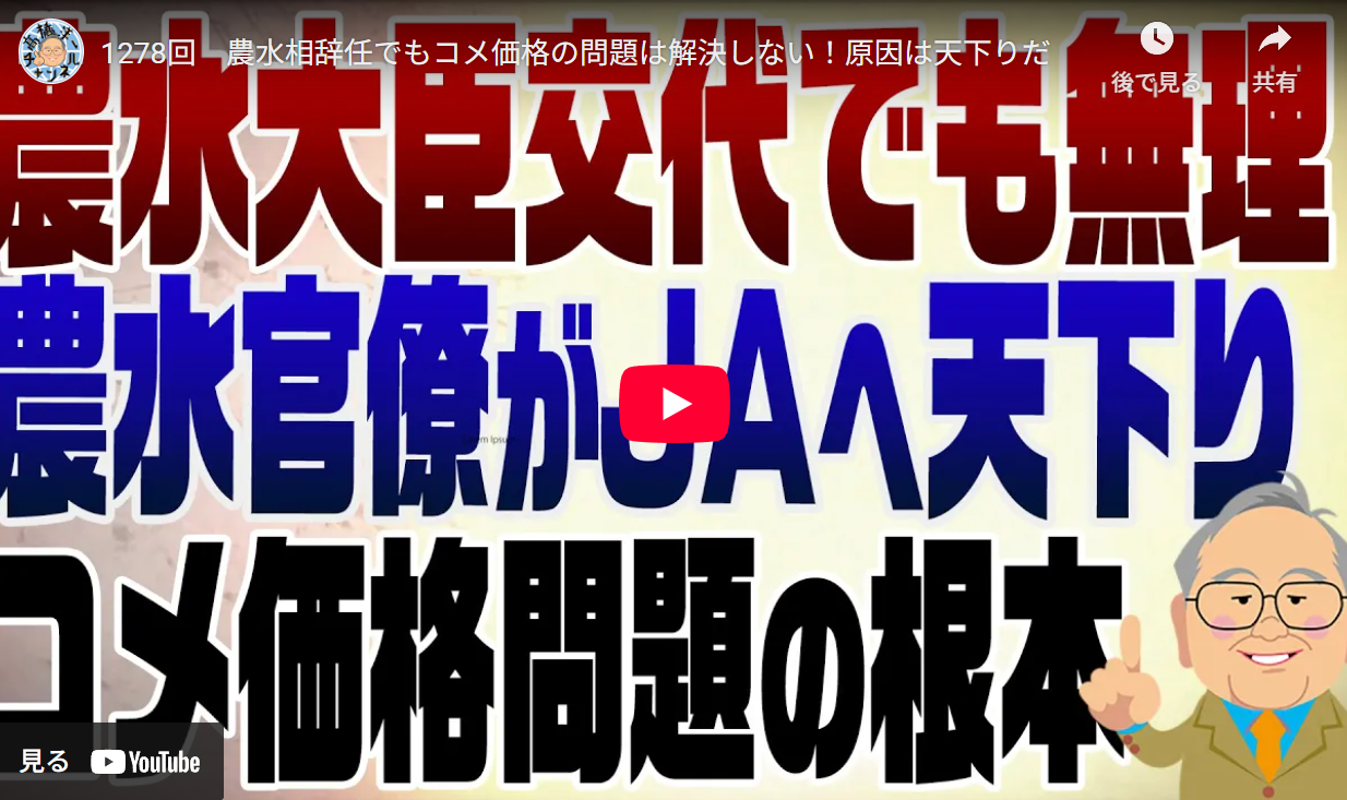 ■農水相辞任でもコメ価格の問題は解決しない!原因は天下りだ