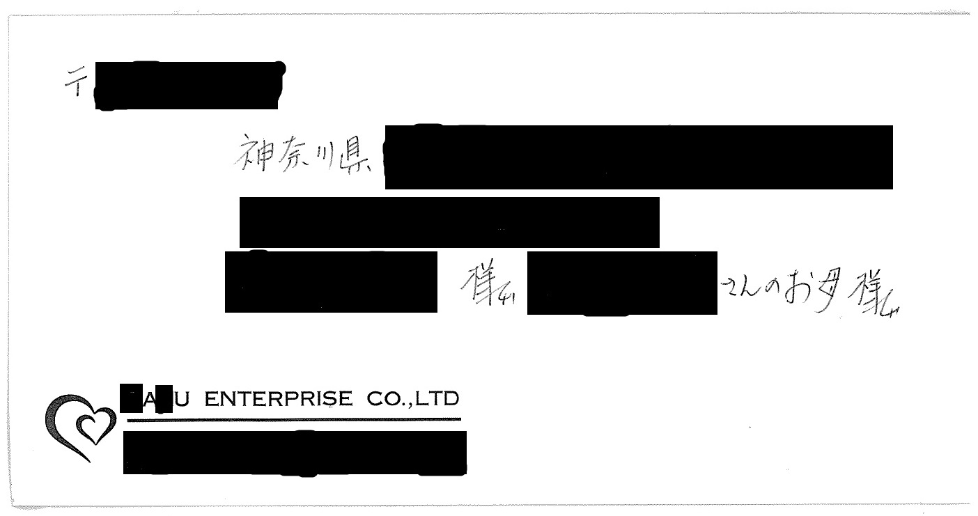 ※重要の報告(2024年4月16日)に記載されている理由に基づき、いままで黒塗りで隠されていた部分を可能な限り取り除いた封筒を追加で公開します。