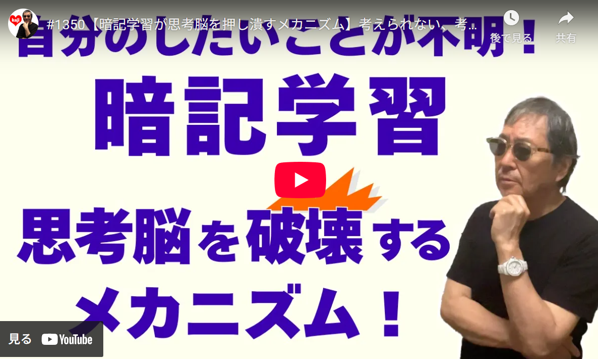 ◆【暗記学習が思考脳を押し潰すメカニズム】考えられない、考えたくない脳は、暗記学習で出来上がる。80年間続ける文科省の狙いは、英語のできない英語学習と同じ理由。-masakazu kaji-