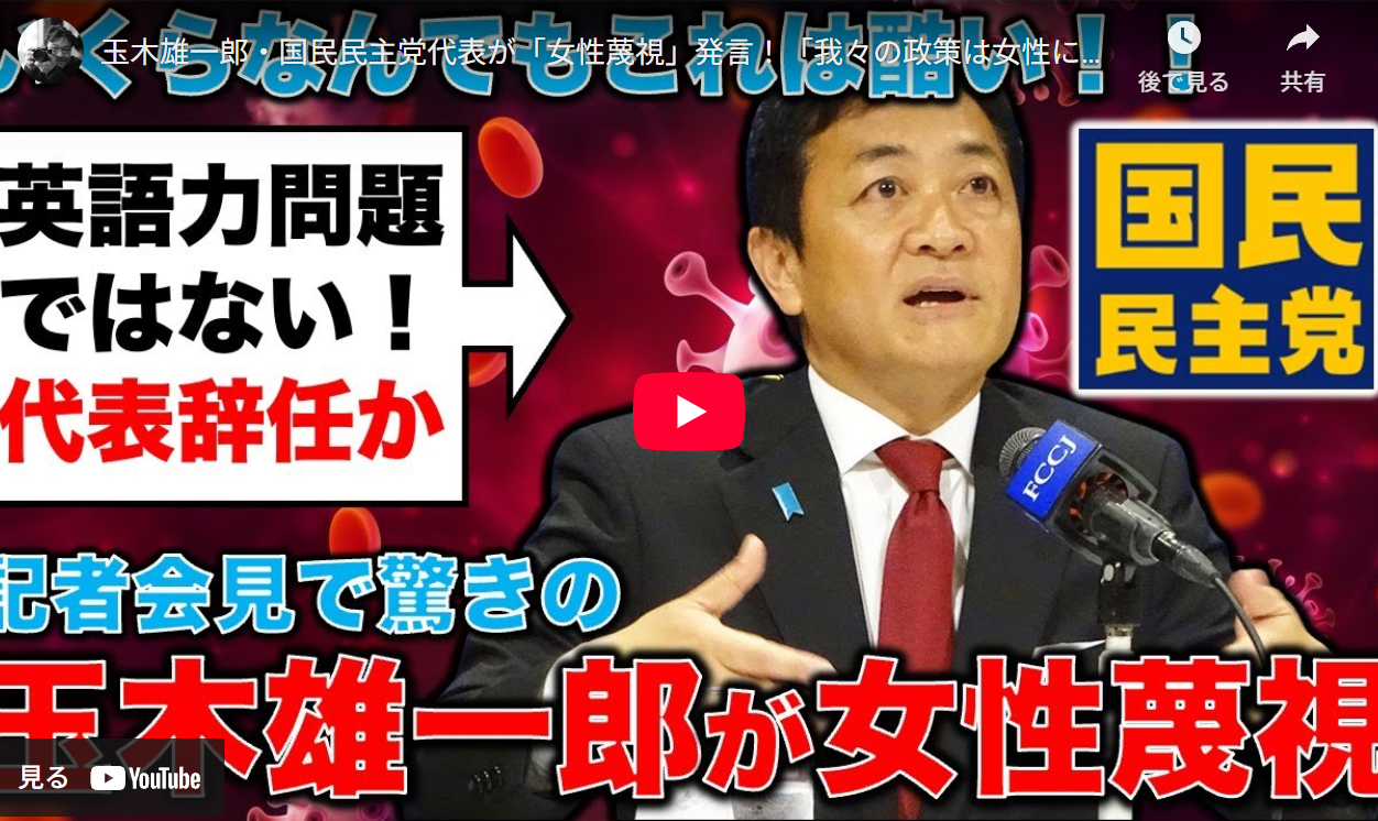 ◆玉木雄一郎・国民民主党代表が「女性蔑視」発言!「我々の政策は女性には理解することが非常に難しい」