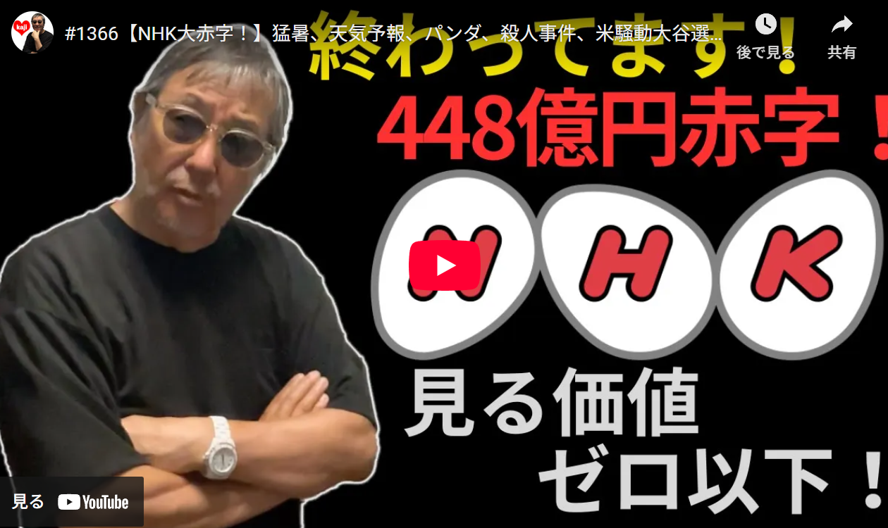 ◆【NHK大赤字!】猛暑、天気予報、パンダ、殺人事件、米騒動大谷選手…ジャーナリズムなどどこにあるんだ?自由契約じゃない契約など、憲法違反の疑い濃厚!-masakazu kaji-