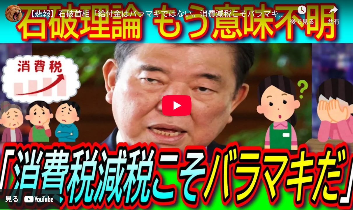 ◆消費減税こそバラマキ」謎理論で減税否定 【2万円給付/参議院選挙/物価高対策/過半数割れ】