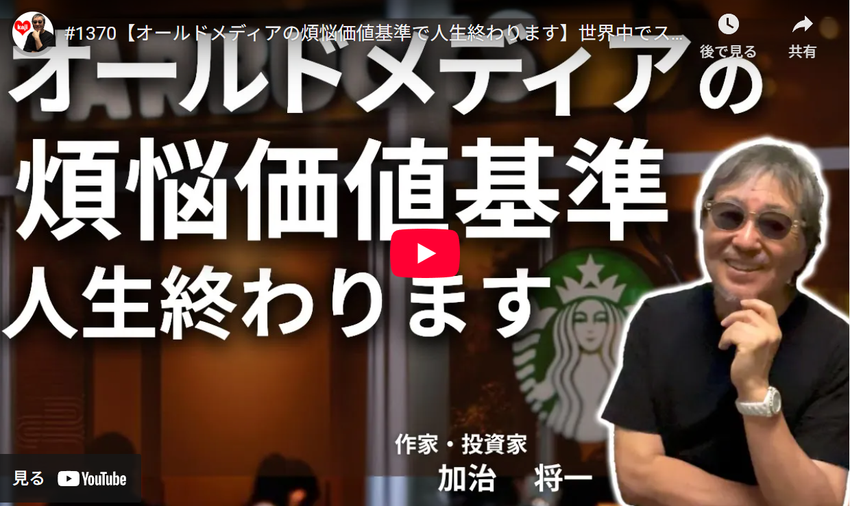 ◆【オールドメディアの煩悩価値基準で人生終わります】世界中でスタバ売上減、閉店続出の原因すら分析できないオールドメディア!日本のTV、新聞で判断が狂うコレが理由!-masakazu kaji-