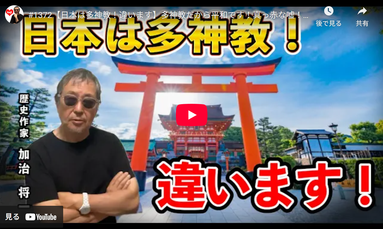 ※Kajiチャンネルの歴史作家・映画監督の加治将一様と有限会社トータルセルフ様から許可を得て動画を紹介しています。