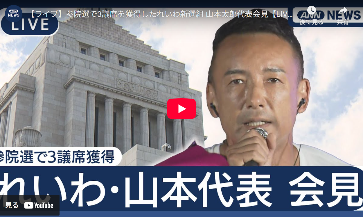 ◆参院選で3議席を獲得したれいわ新選組 山本太郎代表会見【LIVE】2025年7月21日 ANN/テレ朝