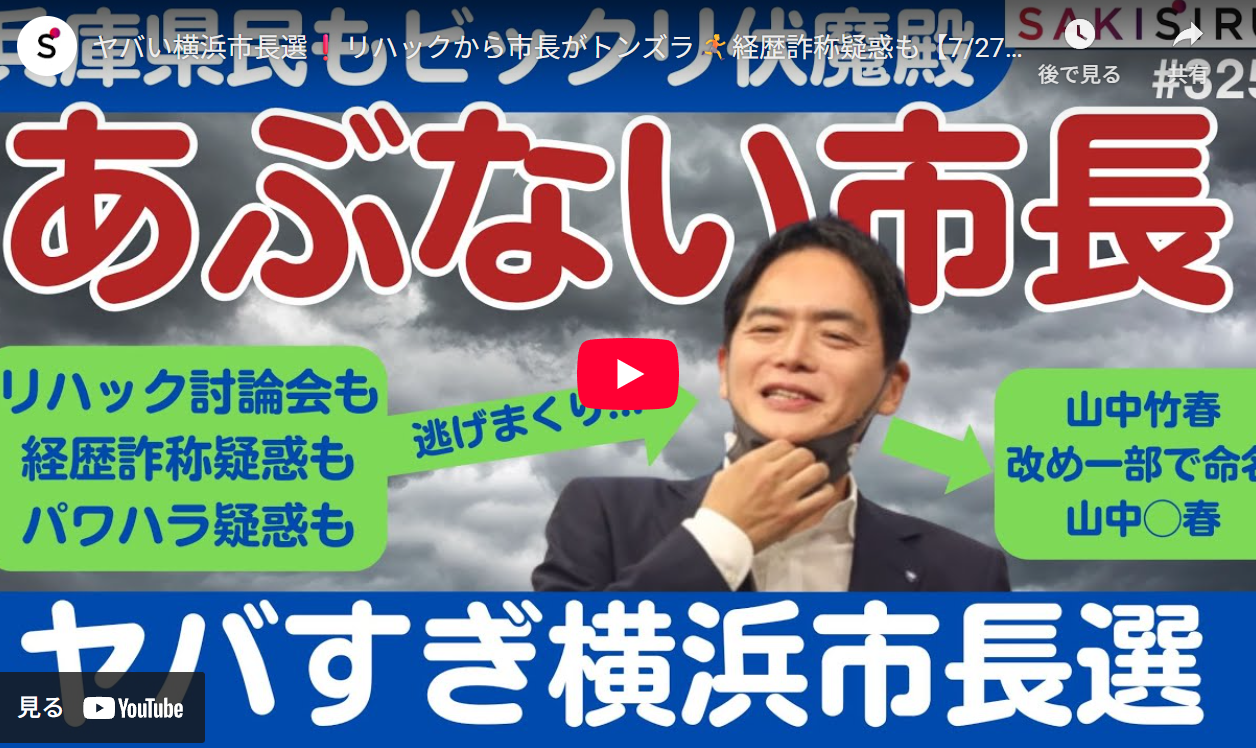 ヤバい横浜市長選❗️リハックから市長がトンズラ🏃➡️経歴詐称疑惑も【7/27夜 SAKISIRU】