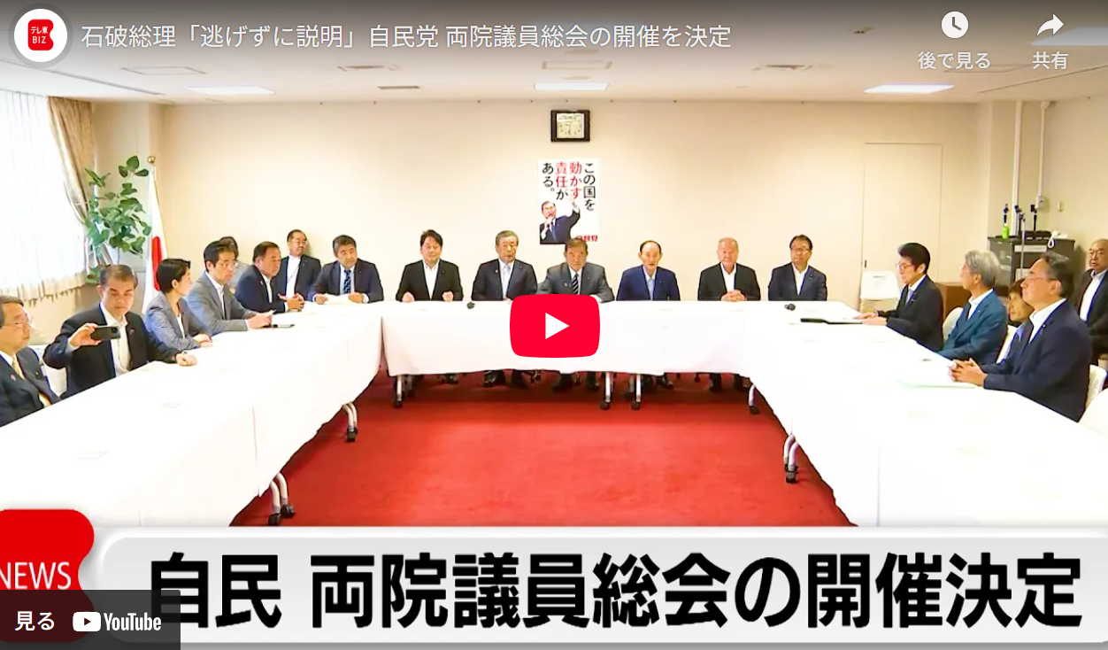 ・参院選後、初めて開かれた自民党の両院議員懇談会。・・・