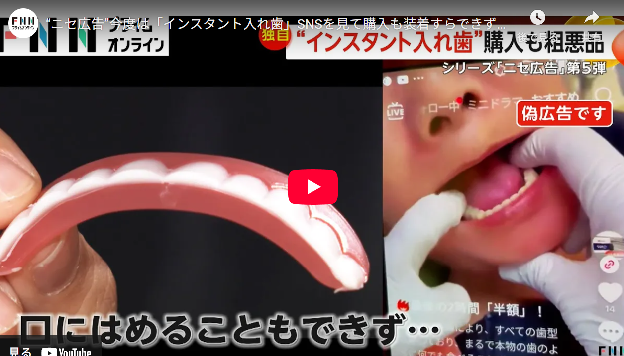 ◆“ニセ広告”今度は「インスタント入れ歯」SNSを見て購入も装着すらできず…