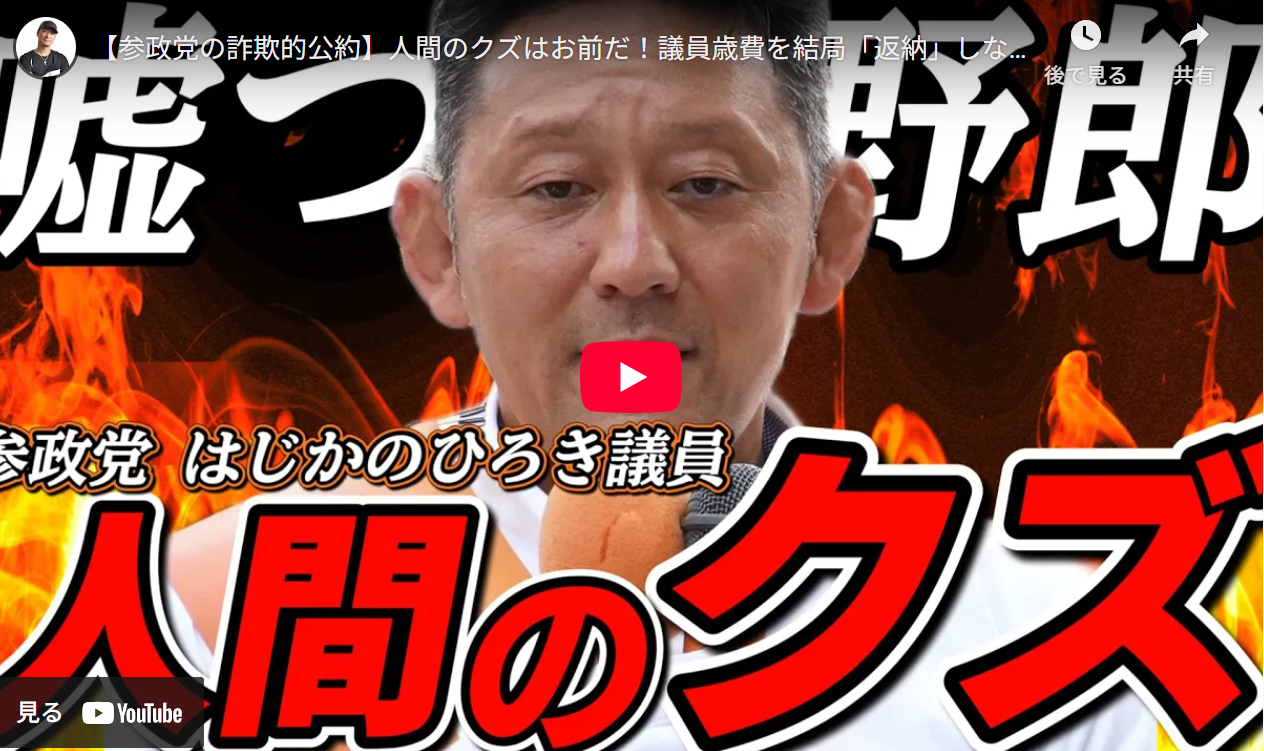 ◆人間のクズはお前だ!議員歳費を結局「返納」しなかった参政党「はじかのひろき」議員の末路。その言い訳が幼稚すぎて…くそウケたw