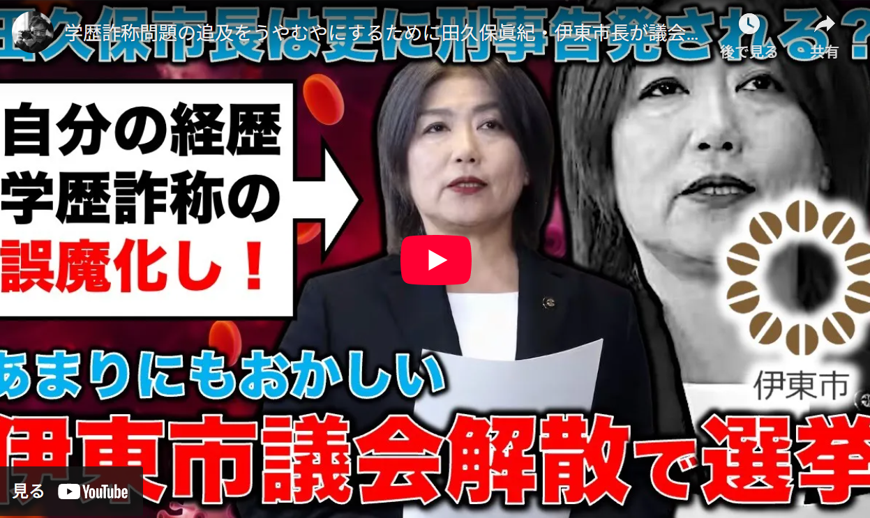 ◆学歴詐称問題の追及をうやむやにするために田久保眞紀・伊東市長が議会を解散!