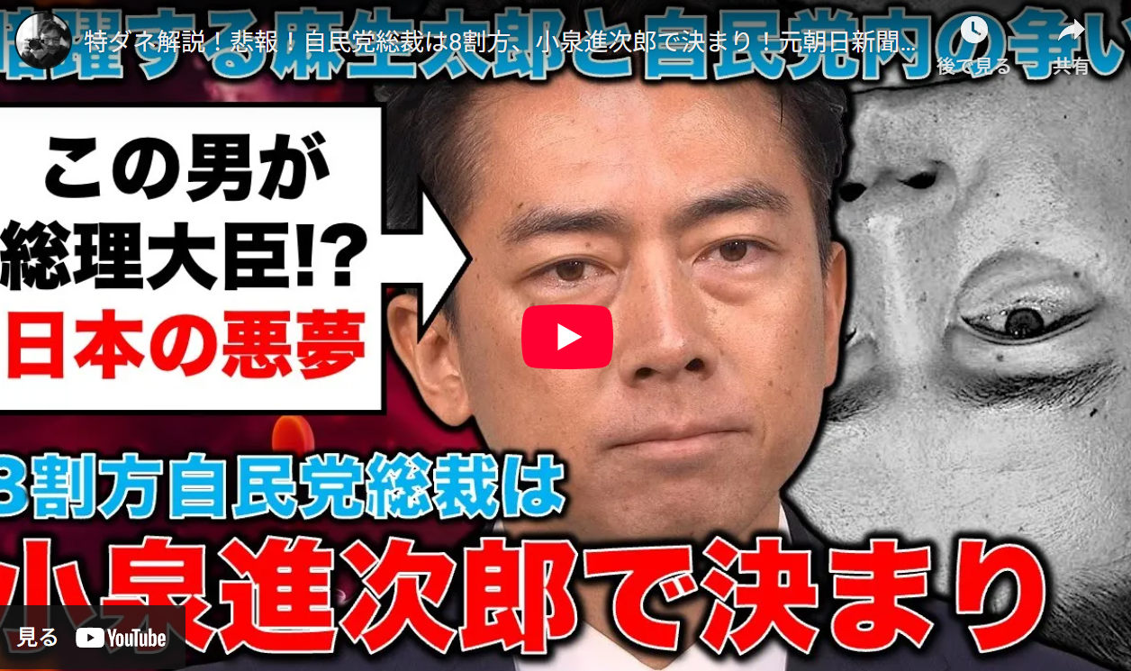 ◆悲報!自民党総裁は8割方、小泉進次郎で決まり!