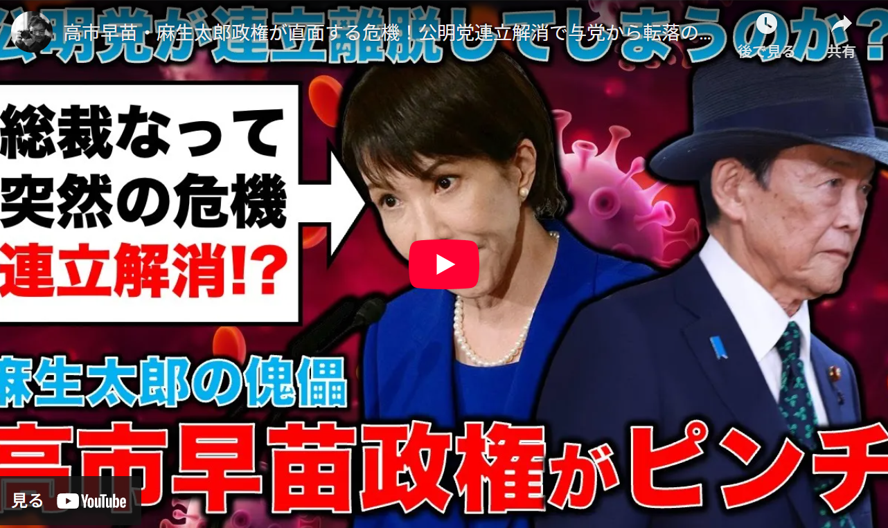■高市早苗・麻生太郎政権が直面する危機!公明党連立解消で与党から転落の可能性とは?